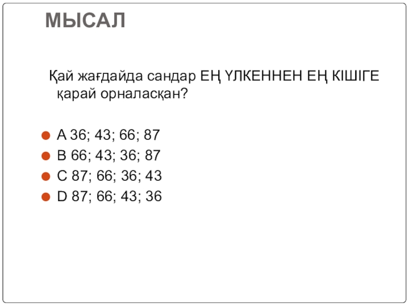 Қай жағдайда сандар ЕҢ ҮЛКЕННЕН ЕҢ КІШІГЕ қарай орналасқан?