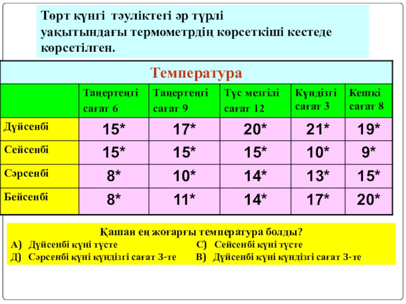 Слайд 27Төрт күнгі тәуліктегі әр түрлі