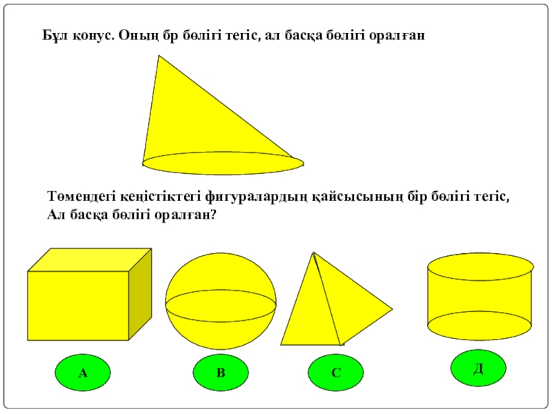 Төмендегі кеңістіктегі фигуралардың қайсысының бір бөлігі тегіс,