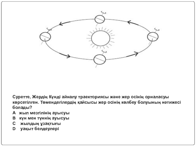 Слайд 15Суретте, Жердің Күнді айналу траекториясы және жер осінің орналасуы