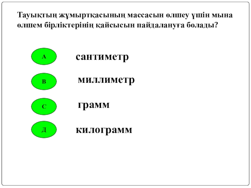 Тауықтың жұмыртқасының массасын өлшеу үшін мына өлшем бірліктерінің қайсысын пайдалануға болады?