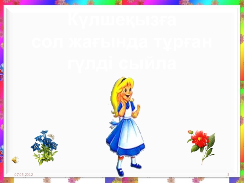 Күлшеқызғасол жағында тұрған гүлді сыйла
