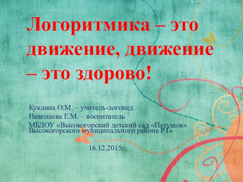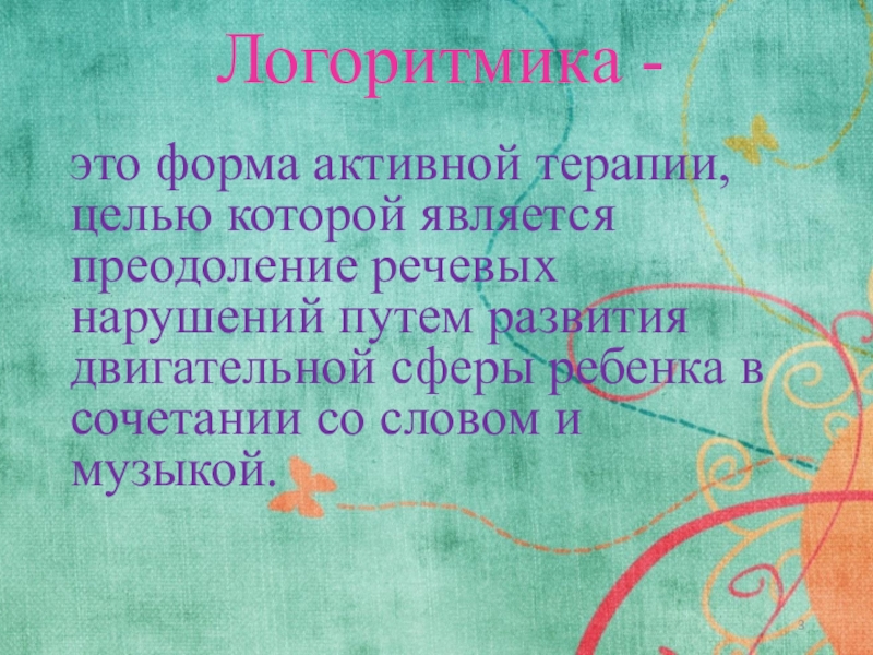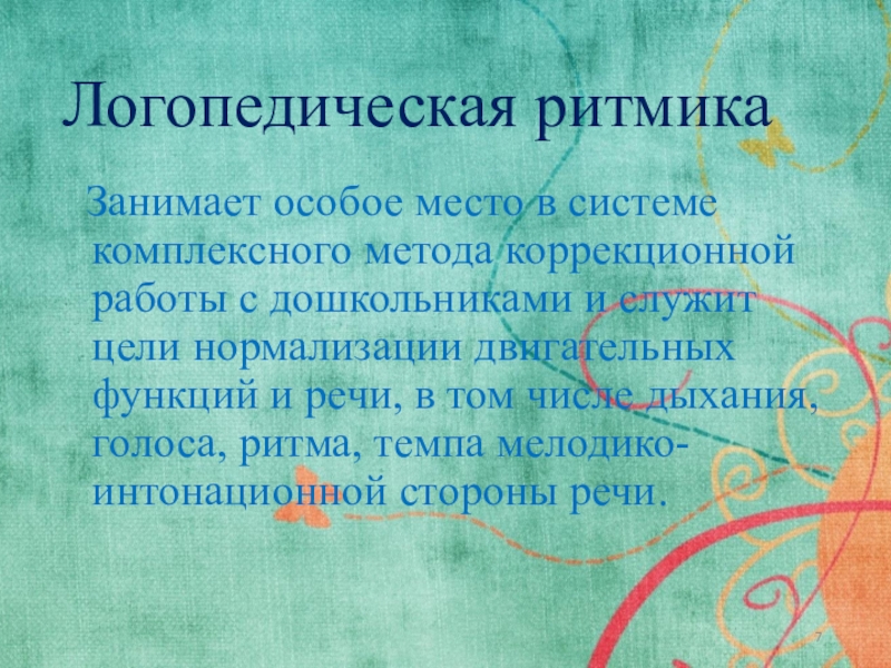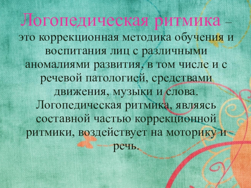 Логопедическая ритмика – это коррекционная методика обучения и воспитания лиц с различными аномалиями развития, в том числе и с речевой патологией, средствами движения, музыки и слова.