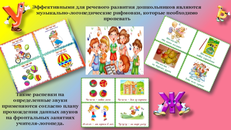 Такие распевки на определенные звуки применяются согласно плану прохождения данных звуков на фронтальных занятиях учителя-логопеда.