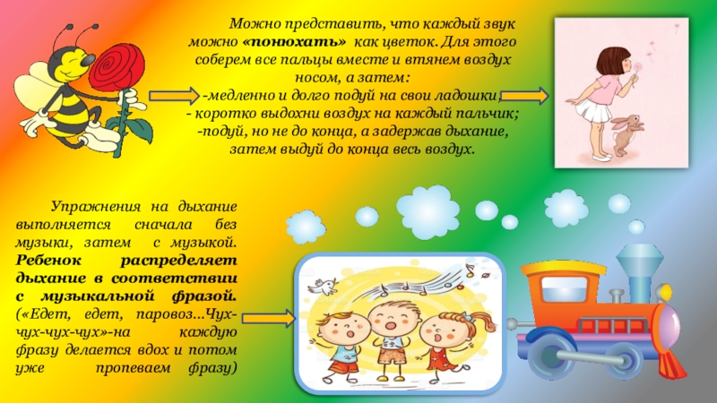 Можно представить, что каждый звук можно «понюхать» как цветок. Для этого соберем все пальцы вместе и втянем воздух носом, а затем: