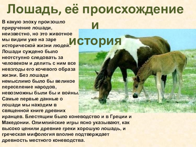 Лошадь, её происхождение и