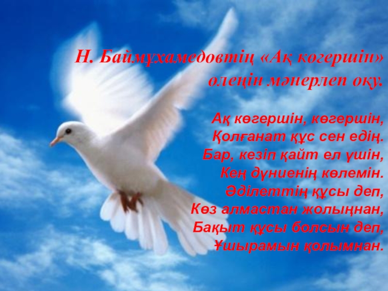 Н. Баймұхамедовтің «Ақ көгершін» өлеңін мәнерлеп оқу.