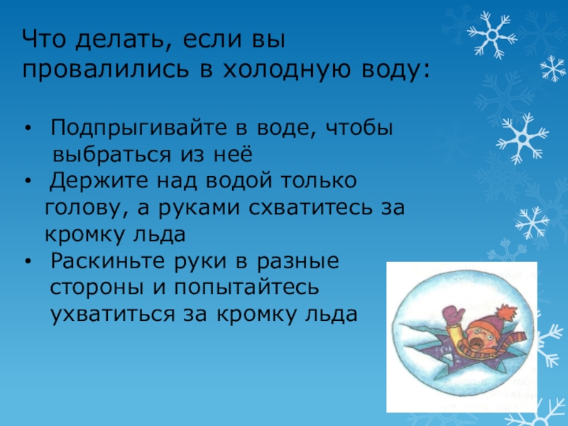 Слайд 13Что делать, если вы провалились в холодную воду: