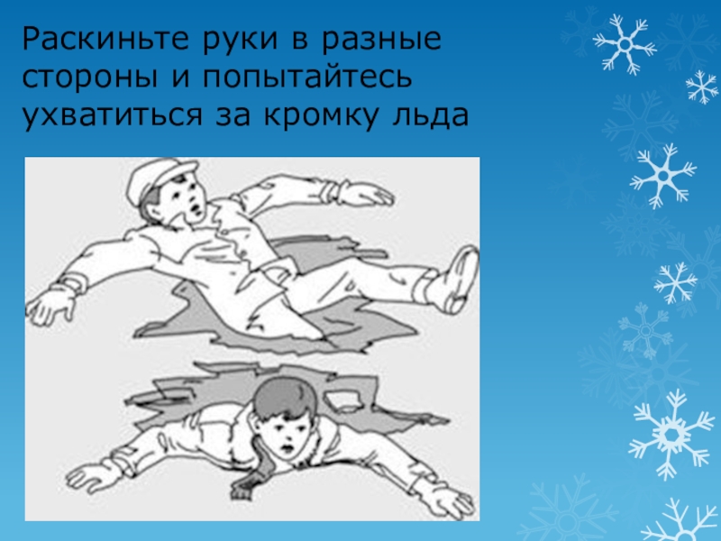 Слайд 29Раскиньте руки в разные стороны и попытайтесь ухватиться за кромку льда