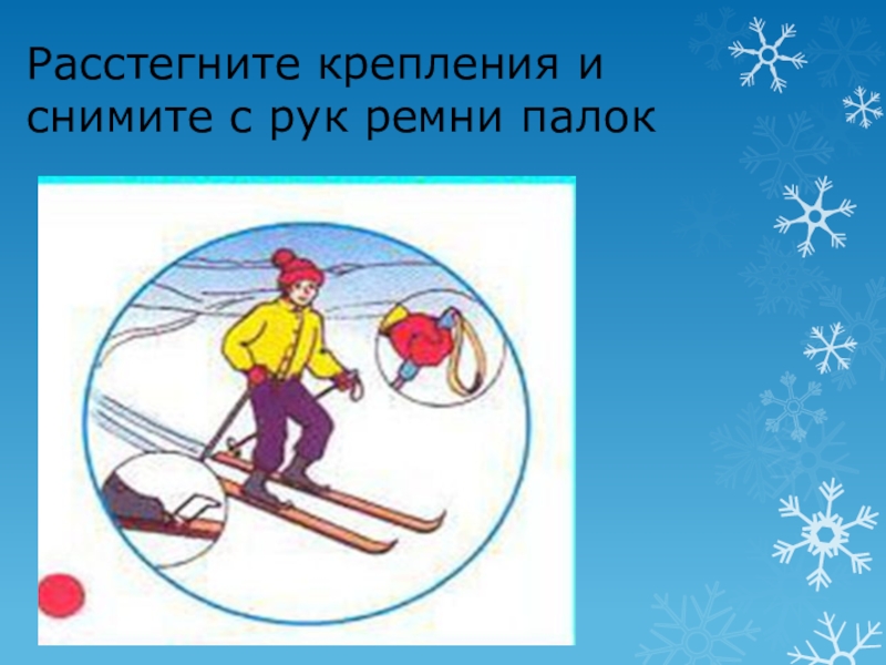 Слайд 25Расстегните крепления и снимите с рук ремни палок