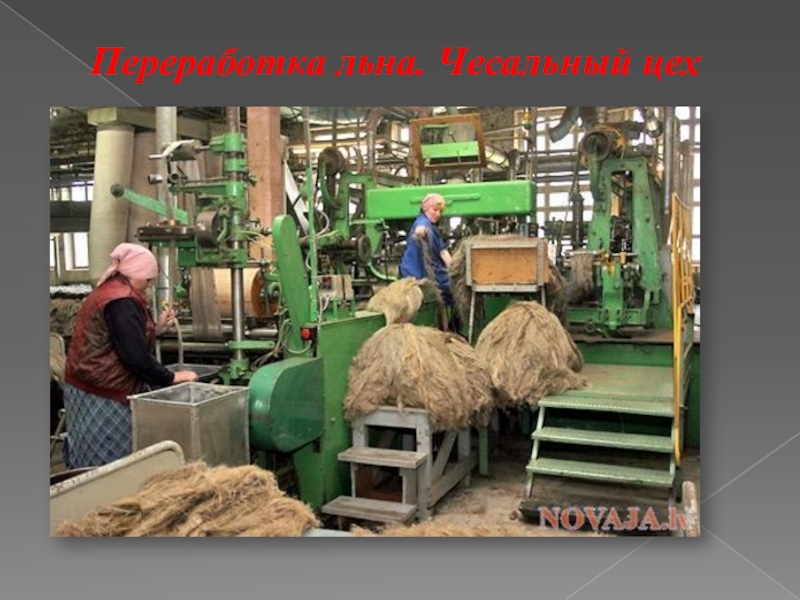Слайд 13Переработка льна. Чесальный цех