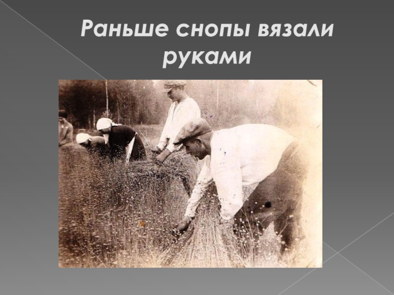 Слайд 5Раньше снопы вязали руками
