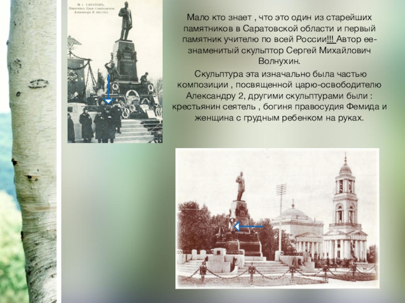 Саратовской области и первый памятник учителю по всей России!!! Автор ее-знаменитый скульптор Сергей Михайлович Волнухин.