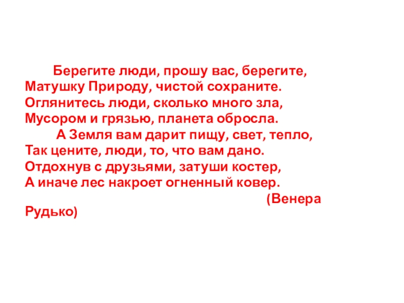 Матушку Природу, чистой сохраните.