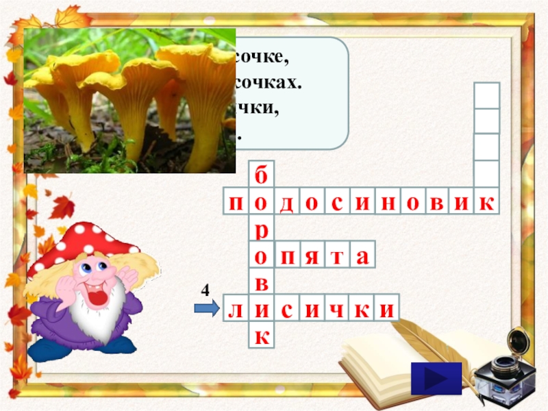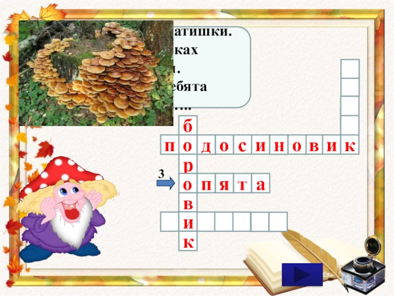 съедобные грибы. Давайте разгадаем с вами кроссворд.