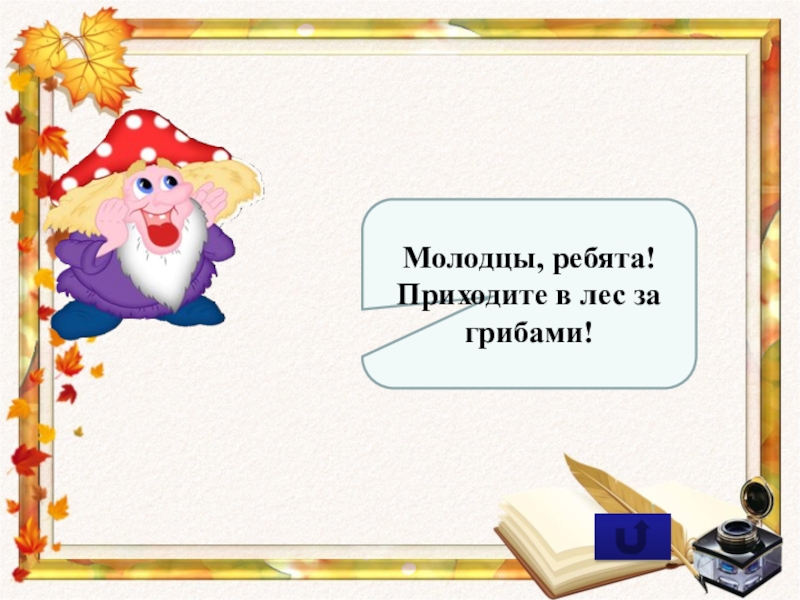 Молодцы, ребята!Приходите в лес за грибами!