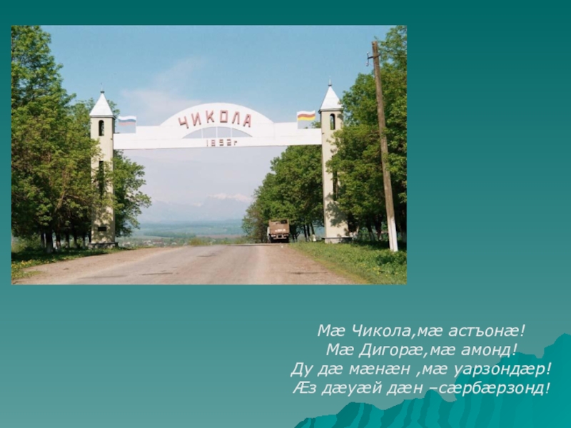 Мæ Чикола,мæ астъонæ!Мæ Дигорæ,мæ амонд!Ду дæ мæнæн ,мæ уарзондæр!Æз дæуæй дæн –сæрбæрзонд!