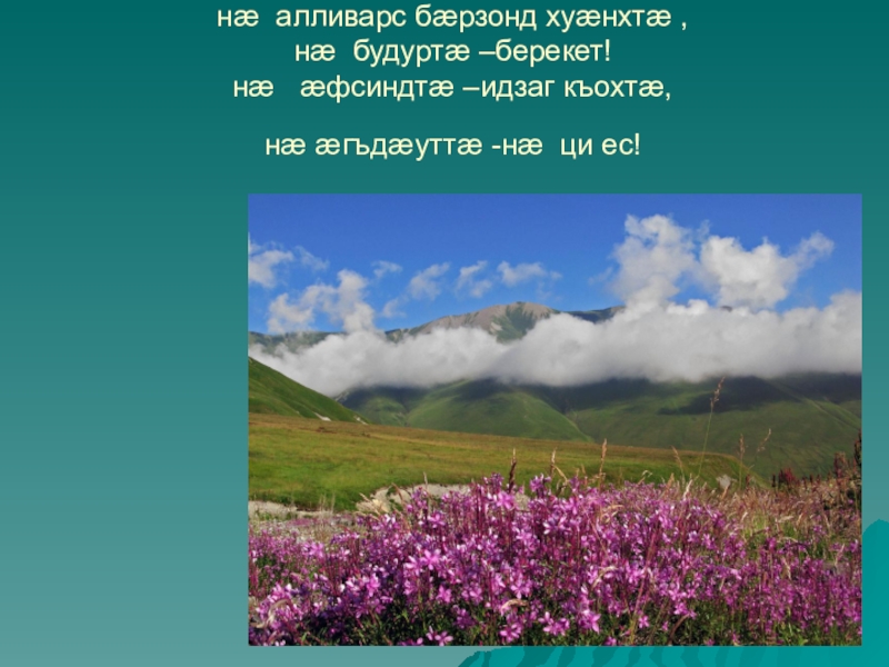 Слайд 9нæ алливарс бæрзонд хуæнхтæ , нæ будуртæ –берекет! нæ æфсиндтæ –идзаг къохтæ, нæ