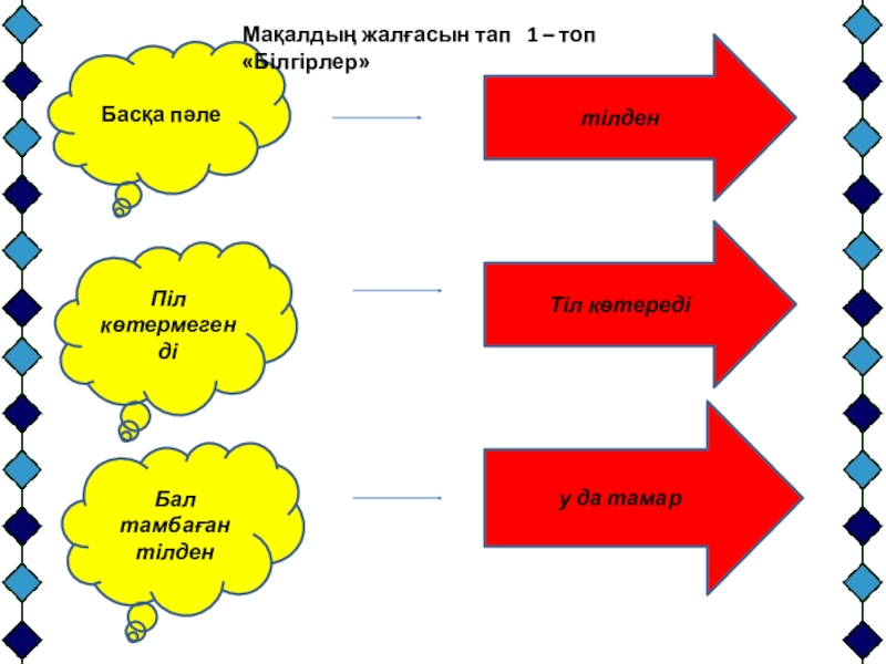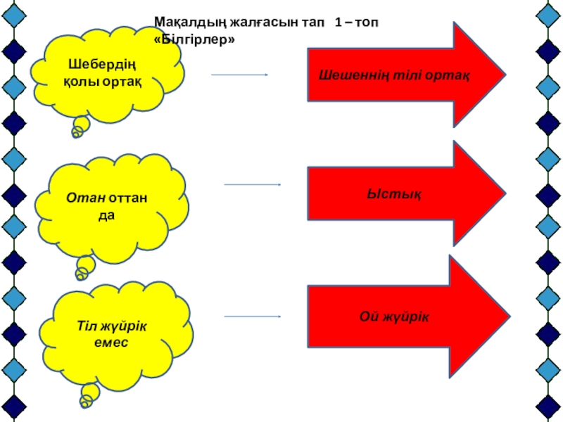 Мақалдың жалғасын тап 1 – топ «Білгірлер»