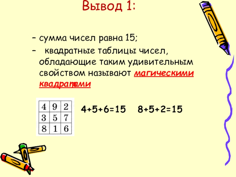 Презентация, доклад на тему Магический квадрат (презентация для начальных классов)