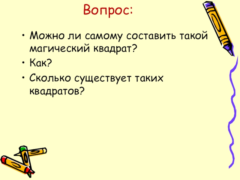 Вопрос: Можно ли самому составить такой магический квадрат?Как?Сколько существует таких квадратов?