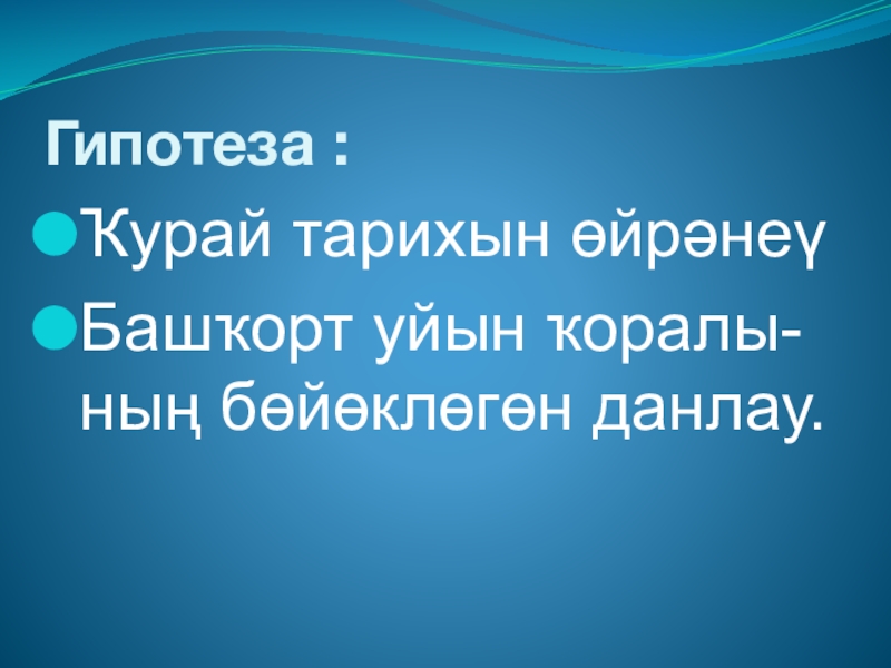 Гипотеза :Ҡурай тарихын өйрәнеүБашҡорт уйын ҡоралы-ның бөйөклөгөн данлау.