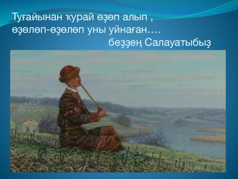 Слайд 31Туғайынан ҡурай өҙөп алып , өҙөлөп-өҙөлөп уны уйнаған….