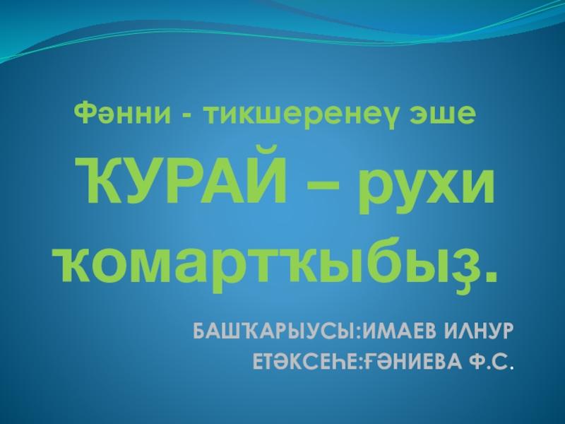 Слайд 1 Фәнни - тикшеренеү эше ҠУРАЙ – рухи ҡомартҡыбыҙ.