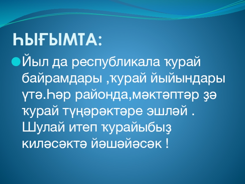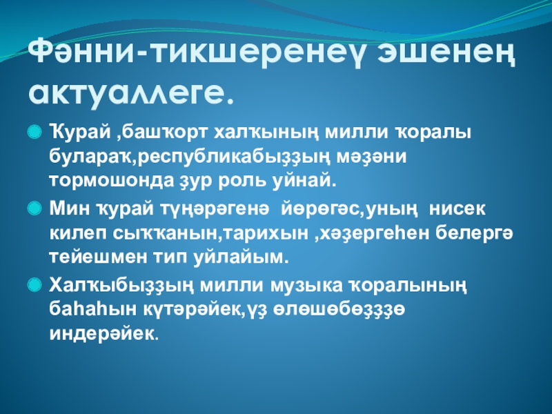 Слайд 40Ҡурайҙың заманса яңғырашы