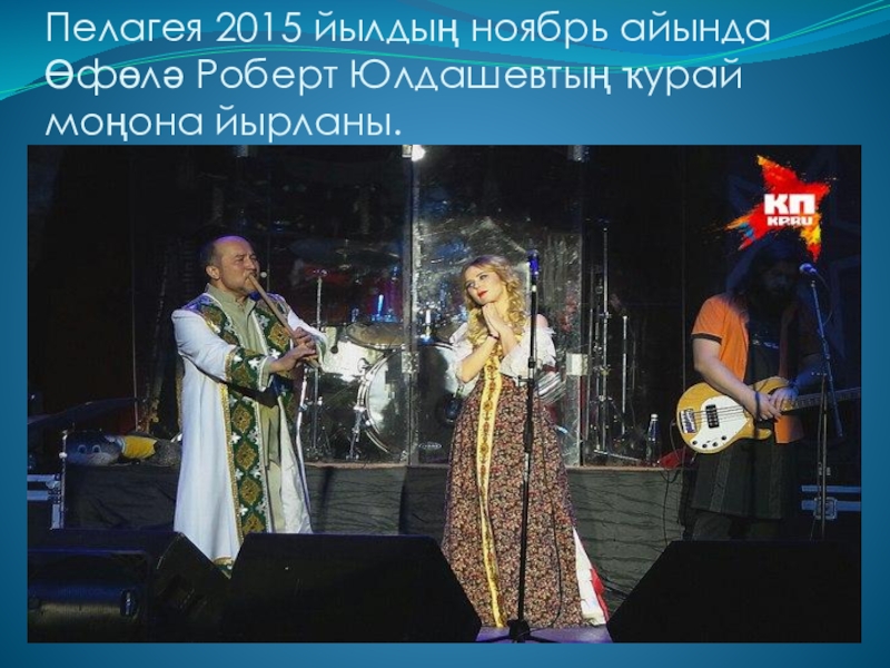 Слайд 42Пелагея 2015 йылдың ноябрь айында Өфөлә Роберт Юлдашевтың ҡурай моңона йырланы.