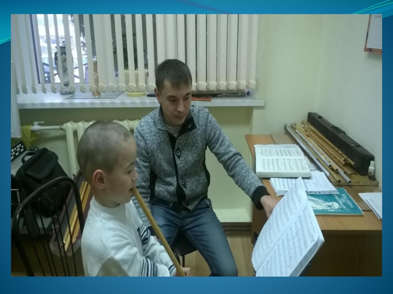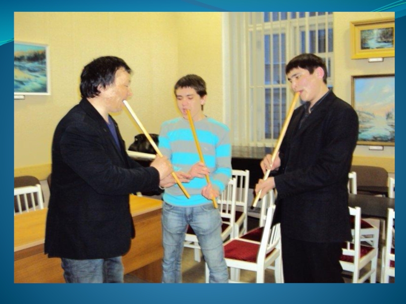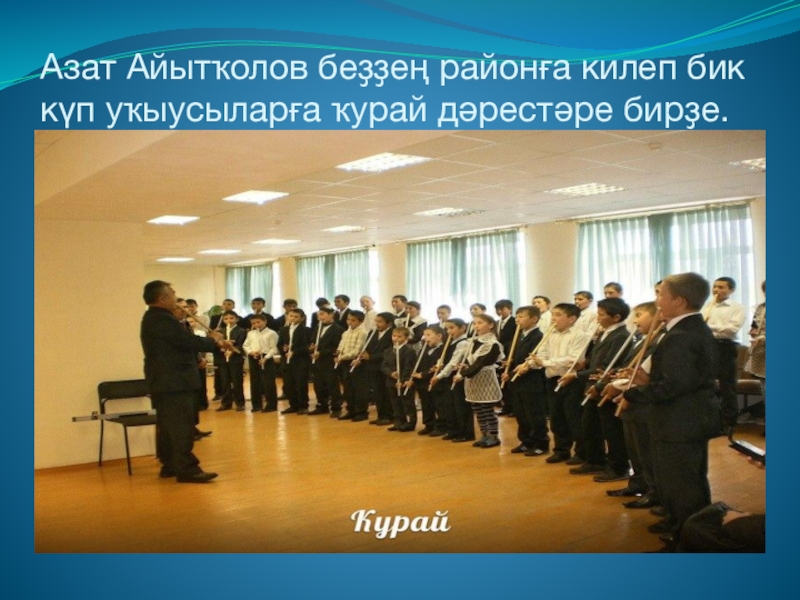 Слайд 37Азат Айытҡолов беҙҙең районға килеп бик күп уҡыусыларға ҡурай дәрестәре бирҙе.
