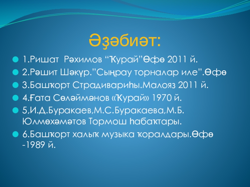 Слайд 57Әҙәбиәт: