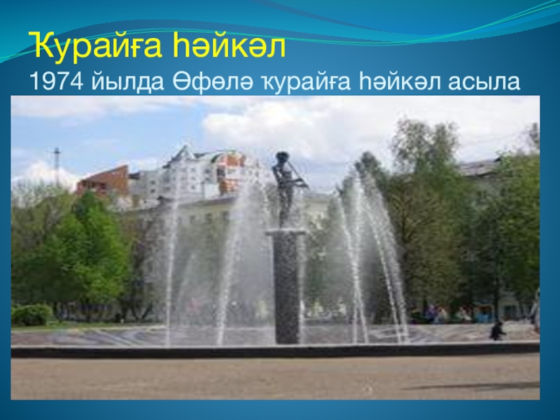 Слайд 23Ҡурайға һәйкәл 1974 йылда Өфөлә ҡурайға һәйкәл асыла
