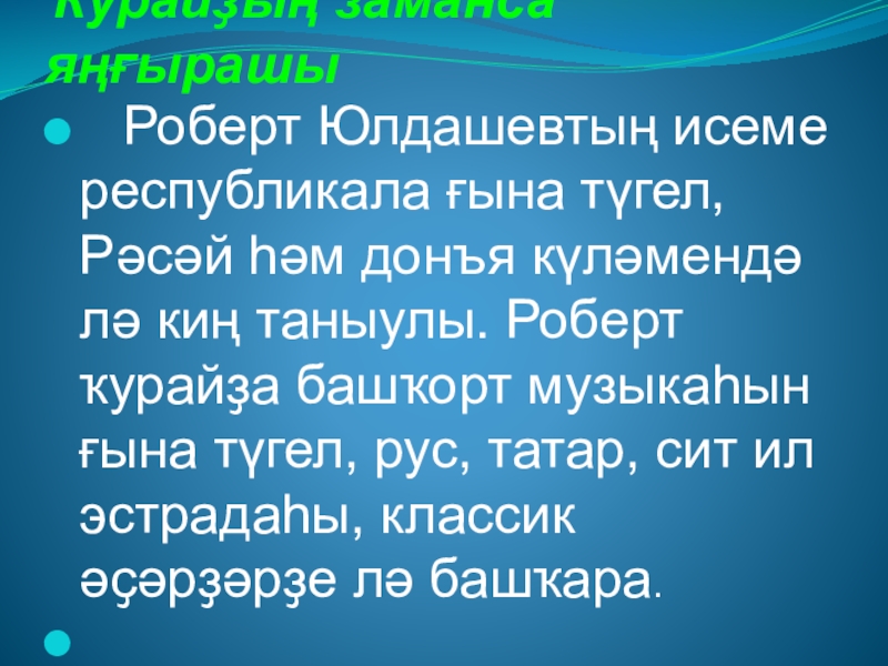Слайд 41Роберт Юлдашевтың ҡурайсылар төркөмө