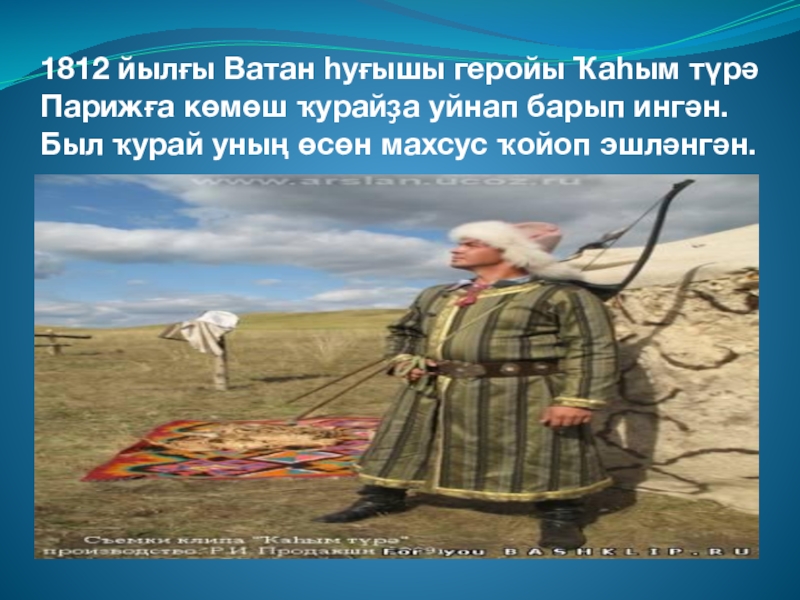 Слайд 271812 йылғы Ватан һуғышы геройы Ҡаһым түрә Парижға көмөш ҡурайҙа уйнап
