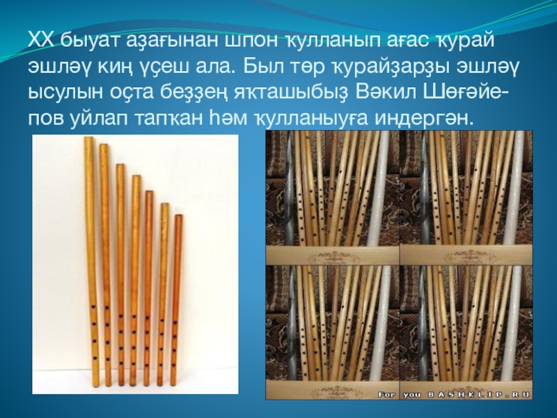 Слайд 43XX быуат аҙағынан шпон ҡулланып ағас ҡурай эшләү киң үҫеш ала.