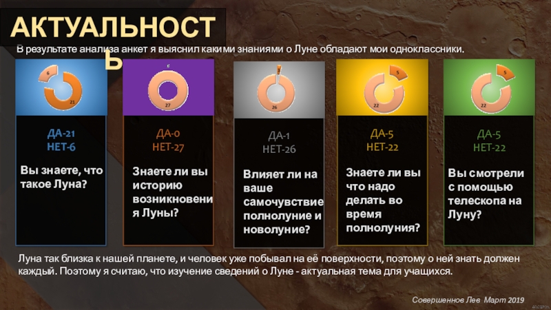 Луна так близка к нашей планете, и человек уже побывал на её поверхности, поэтому о ней знать должен каждый. Поэтому я считаю, что изучение сведений о Луне - актуальная тема для учащихся.