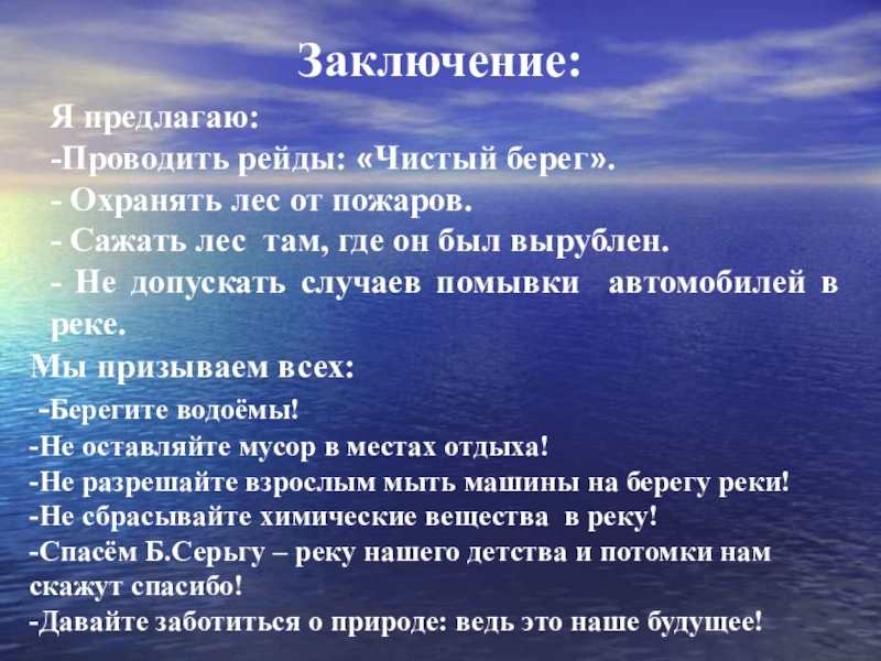 -Спасём Б.Серьгу – реку нашего детства и потомки нам скажут спасибо!