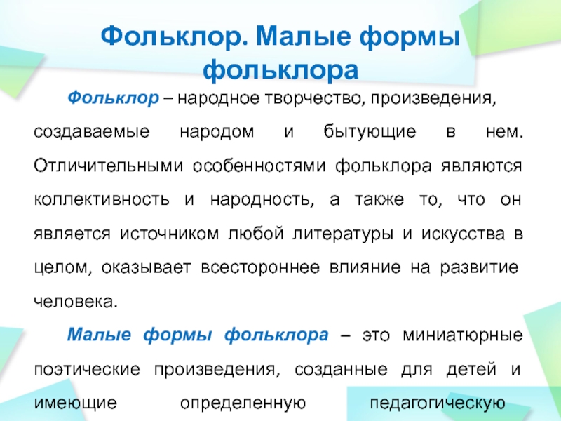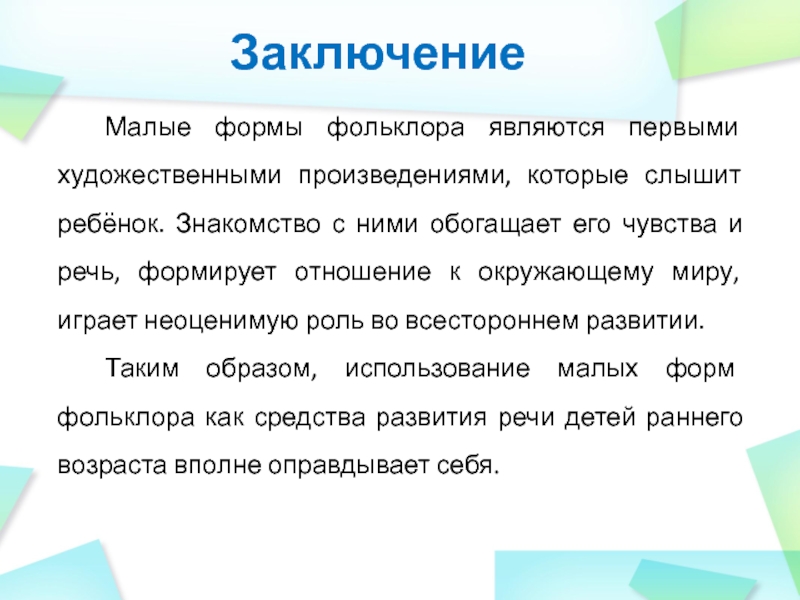 Использование фольклора в НОД по развитию речи и ознакомлению с художественной литературой