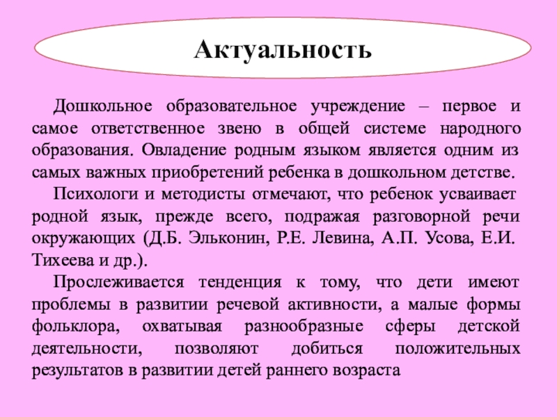 Проблема развития речи в раннем возрасте