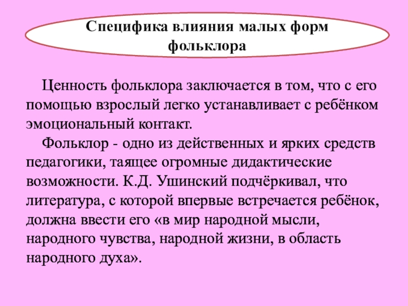 Специфика влияния малых форм фольклора