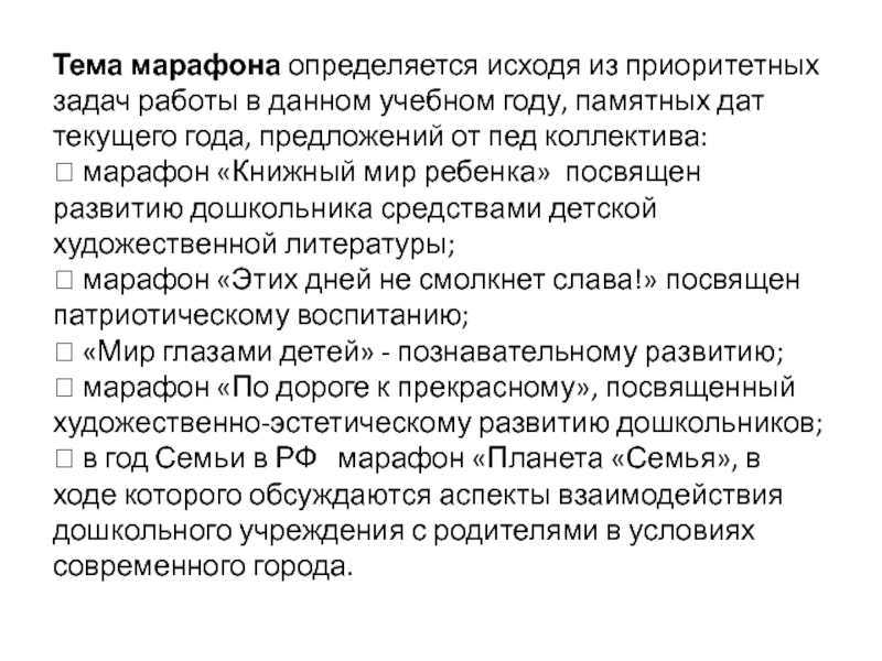 Слайд 1Марафон - разная форма работы образовательной деятельности, объединённая одной темой.