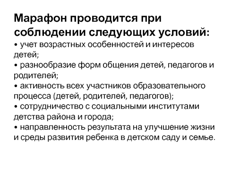 Слайд 5Марафон проводится при соблюдении следующих условий: