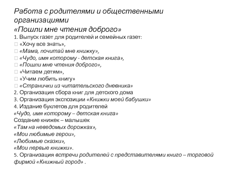 5. Организация встречи родителей с представителями книго – торговой фирмой «Книжный город» .