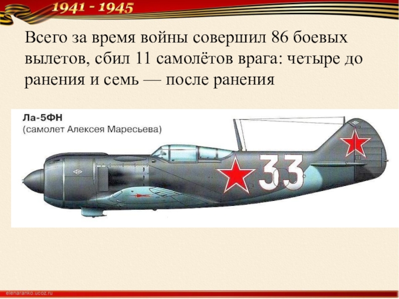 Слайд 10Всего за время войны совершил 86 боевых вылетов, сбил 11 самолётов