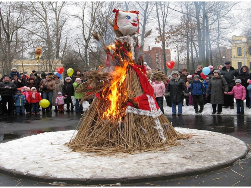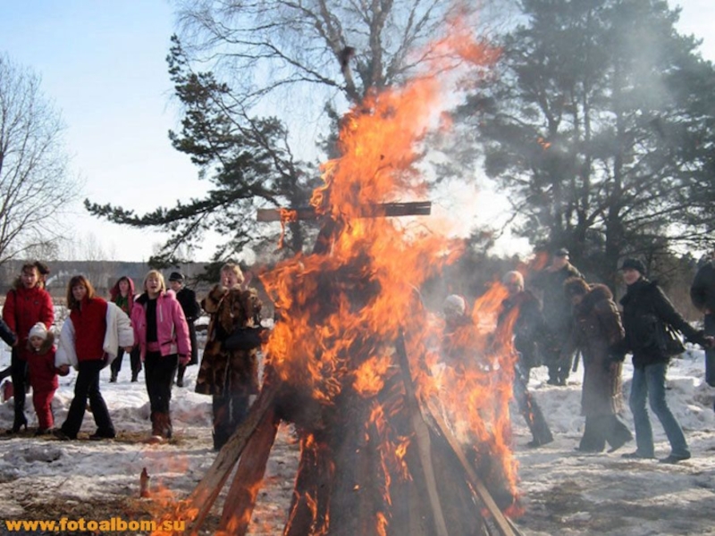 - не обходится и без сожжения чучела. Пожалуй, самый известный и самый сохранившийся ритуал, символизирующий проводы зимы.