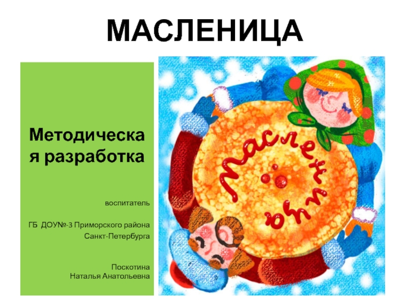 МАСЛЕНИЦАМетодическая разработка воспитатель ГБ ДОУ№-3 Приморского районаСанкт-Петербурга Поскотина Наталья Анатольевна