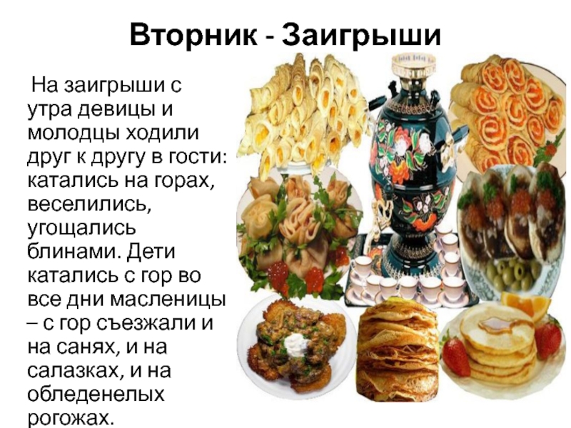 Вторник - Заигрыши    На заигрыши с утра девицы и молодцы ходили друг к другу