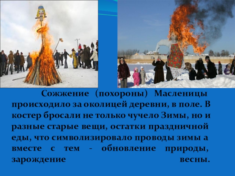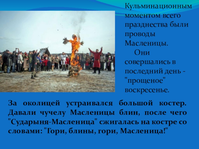 Кульминационным моментом всего празднества были проводы Масленицы.
