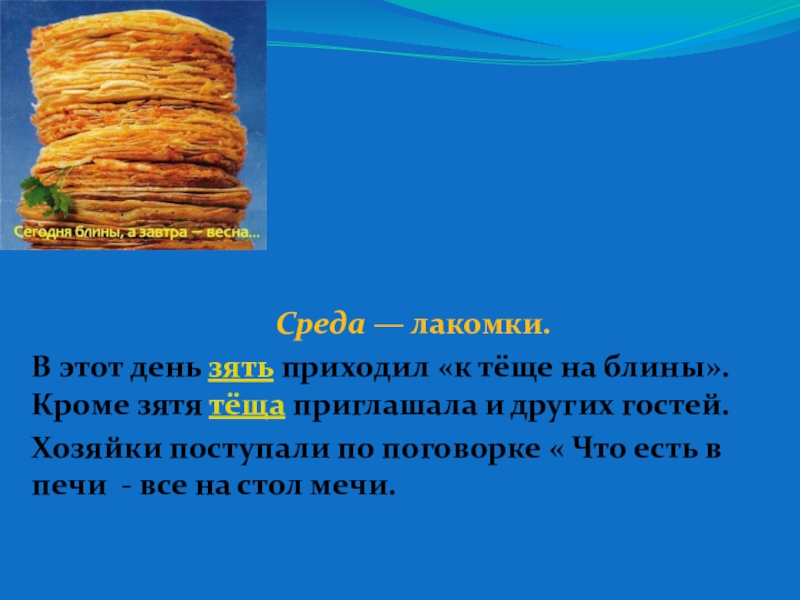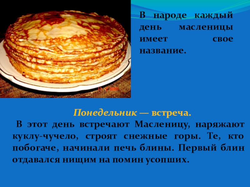 В народе каждый день масленицы имеет свое название.